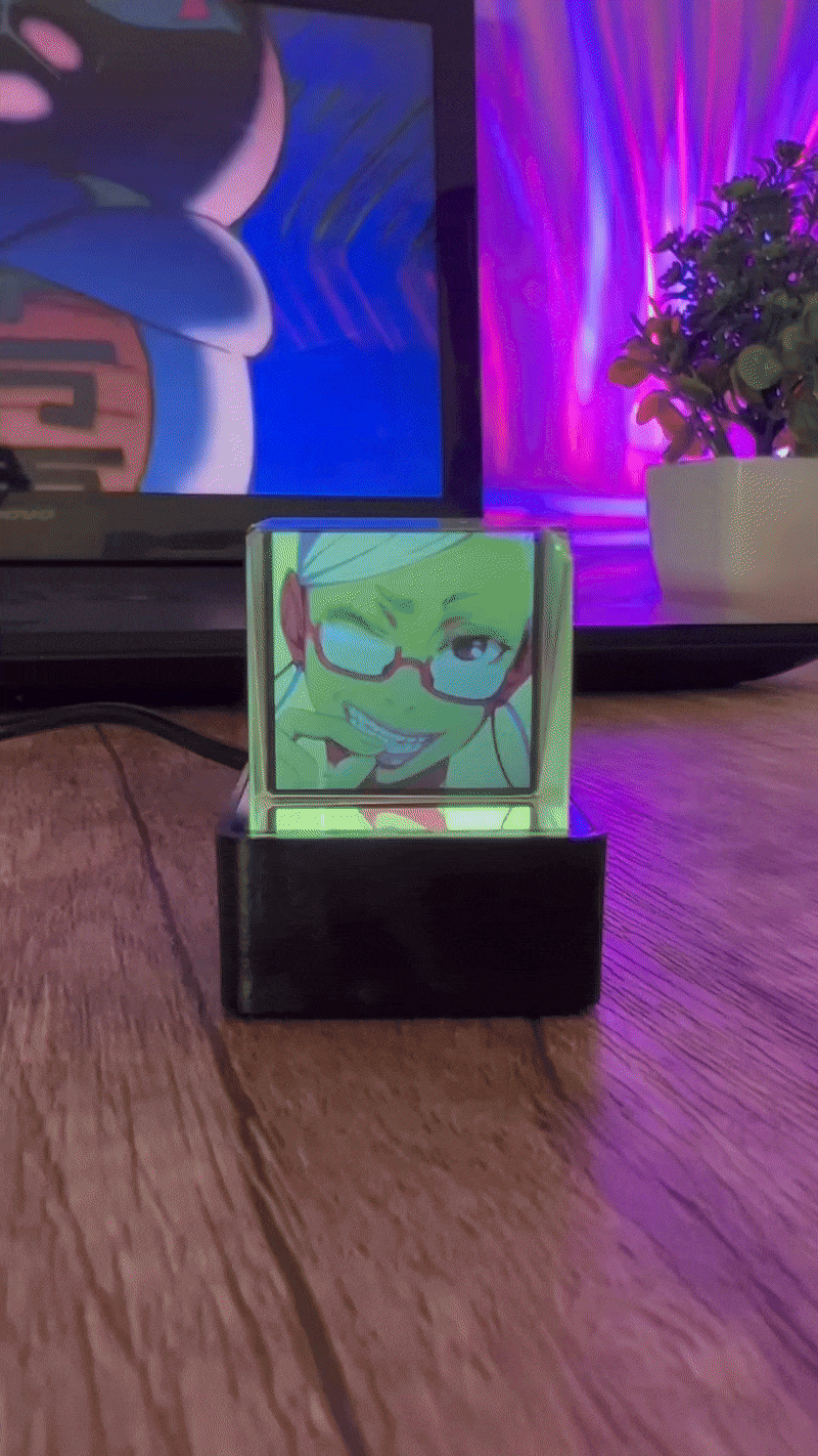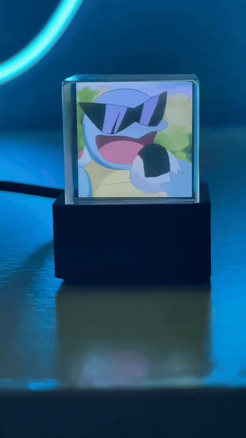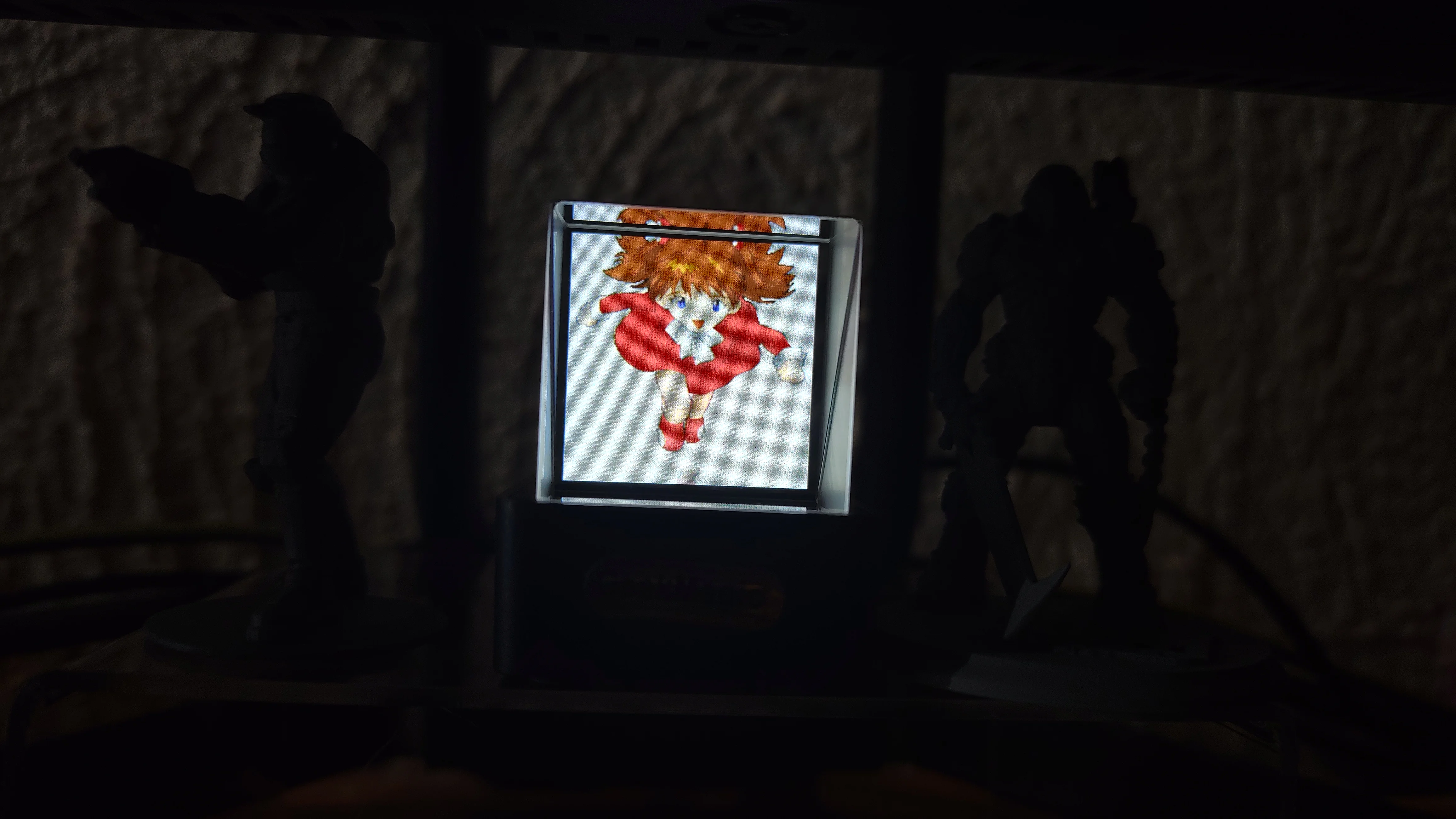 The holographic effect is very good. And it's fun to set up the device. Please note that you require basic knowledge on how to configure the device via WIFI and access it through IP. And it's the same for uploading the GIFs, how to download and convert them to the required size. I still highly recommend it; it looks great on the desk, although it's smaller than I expected.